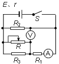 3、选择题 如图所示,电源的电动势为E、内阻为r,R1、R2、R3为定值电阻,R为滑动变阻器。A为电流表、V为电压表。当滑动变阻器的滑动触头向右滑动时,下列说法中正确的是