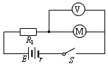 2、计算题 如图所示,电源的电动势为E=10V,内阻r=0.5Ω,分压电阻R1=1.5Ω,电动机绕组电阻R0=1.0Ω,当开关S闭合时,电动机刚好正常工作,电压表的示数UM=6V。求: