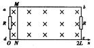 1、选择题 如图,矩形裸导线框abcd的长边长度为2L,短边的长度为L,在两短边上均接有电阻R,其余部分电阻不计。导线框一长边与x轴重合,左边的坐标x=0,线框内有一垂直于线框平面的匀强磁场,磁场的磁感应强度为B。一质量为m、电阻也为R的光滑导体棒MN与短边平行且与长边接触良好。开始时导体棒静止于x=0处,从t=0时刻起,导体棒MN在沿x轴正方向的一拉力作用下,从x=0处匀加速运动到x =2L处。则导休棒MN从x=0处运动到x=2L处的过程中通过电阻R的电量为(?)