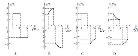 3、选择题 一个位于竖直平面内的正方形闭合导体框,其上下两条边水平,从静止开始下落一定高度后,垂直穿越一个磁感应强度沿水平方向且与线圈平面垂直的有界匀强磁场区域,该区域上下边界也水平。下图是自导体框开始下落到完全穿越磁场区域的过程中,导体框中的感应电流随时间变化的图象,其中肯定与实际不相符的是(忽略空气阻力的影响,线圈始终在竖直平面内平动)