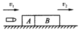 5、选择题 如图所示,木块A、B并排且同定在水平桌面上,A的长度是L,B的长度是2L。一颗子弹沿水平方向以速度v1射入A,以速度v2穿出B。子弹可视为质点,其运动视为匀变速直线运动,则子弹穿出A时的速度为