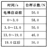 5、计算题 一同学家住在23层高楼的顶楼。他想研究一下电梯上升的运动过程,某天他乘电梯上楼时携带了一个质量为5 kg的重物和一个量程足够大的台秤,他将重物放在台秤上。电梯从第1层开始启动,一直运动到第23层停止。在这个过程中,他记录了台秤在不同时段内的读数如表所示。根据表格中的数据,求: