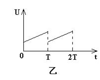 2、计算题 (实验班做) 如图甲所示,质量为m、电量为q的正离子束(重力不计),以速度v0(v0很大),水平进入平行板电容器,进入位置为两板正中间。已知两板相距为d,板长为L,在平行板右侧,紧挨下板,且和下板处在同一平面的位置上放置一块长度也为L的荧光板。现在两平行板间加载随时间周期性变化的电压,如图乙所示。为使所有离子都能打在荧光板上,求: