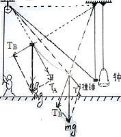 本题解析:由几何知识知,当撞锤上升L/2时,两绳恰垂直;在摆锤上升过程中撞钟受力如图所示,
