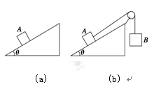 3、计算题 质量为m的物体A放在倾角为θ=37°的斜面上时,恰好能匀速下滑,如图(a)所示;现用细线系住物体A,并平行于斜面向上绕过光滑的定滑轮,另一端系住物体B,物体A恰好能沿斜面匀速上滑,如图(b)所示,求物体B的质量.(sin37°=0.6,cos37°=0.8,tan370=0.75)