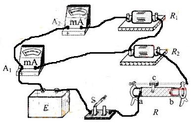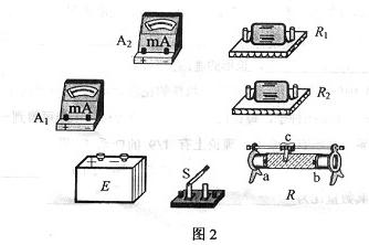 小题2:应选电流表A1,因为A2选量程较大.滑动变阻器应该起到限流作用,所以算滑动变阻器R2,