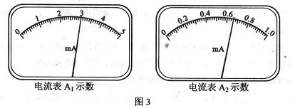 未调到满偏,两电流表的示数如图3所示,从图中读出