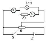 (2)根据闭合电路欧姆定律知,灯泡两端的电压U=I2(R+RA2),通过灯泡的电流I=I1-I2,所以LED灯正常工作时的电阻Rx=.I1、I2分别为电流表A1、A2的读数