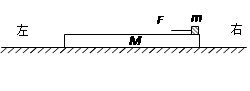 3、计算题 (8分)如图所示,光滑水平面上有一块木板,质量M="2.0" kg,长度L=1.0m。在木板的最右端有一个小滑块(可视为质点),质量m="1.0" kg。小滑块与木板之间的动摩擦因数μ=0.2。开始时它们都处于静止状态。某时刻起对小滑块施加一个F="5.0" N水平向左的恒力,此后小滑块将相对木板滑动。取g ="10" m/s2。求: