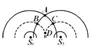 3、选择题 两个振动情况完全一样的波源S1、S2相距6m,它们在空间产生的干涉图样如图所示,图中实线表 示振动加强区域,虚线表示振动减弱区域,下列说法正确的是( )