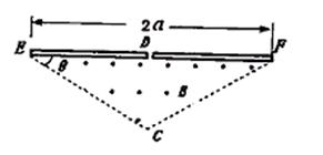 4、计算题 如图所示,在一底边长为2a,θ=30°的等腰三角形区域内(D在底边中点),有垂直纸面向外的匀强磁场.现有一质量为m,电量为q的带正电粒子从静止开始经过电势差为U的电场加速后,从D点垂直于EF进入磁场,不计重力和与空气阻力的影响.