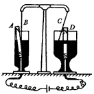 3、选择题 物理学家法拉第在研究电磁学时,亲手做过许多实验。如图所示的实验就是著名的电磁旋转实验,这种现象是:如果载流导线附近只有磁铁的一个极,磁铁就会围绕导线旋转;反之,载流导线也会围绕单独的某一磁极旋转。这一装置实际上就是最早的电动机。图中A是可动磁铁,B是固定导线,C是可动导线,D是固定磁铁。图中黑色部分表示汞(磁铁和导线的下半部分都浸没在汞中),下部接在电源上。请你判断这时自上向下看,A和C转动方向为