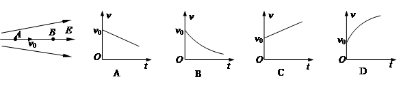 3、选择题 如图所示,电场中一正离子只受电场力作用从A点运动到B点。离子在A点的速度大小为,速度方向与电场方向相同.能定性反映该离子从A点到B点运动情况的速度—时间(