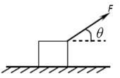 5、简答题 如图所示,物体m与天花板间的动摩擦因数为μ,当力F与水平方向夹角为θ时,物体沿天花板匀速运动.求力F的大小。