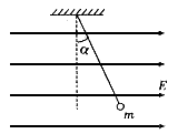 1、选择题 如图所示,一条绝缘细线,上端固定,下端拴一个质量为m的带电小球。将它置于一匀强电场中,电场强度大小为E,方向水平向右。当细线离开竖直位置的偏角为α时,小球处于平衡状态,则小球所带的电荷量为