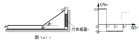 3、计算题 (2012年2月深圳第一次调研)如图(a)所示,“┙”型木块放在光滑水平地面上,木块水平表面AB粗糙,光滑表面BC且与水平面夹角为θ=37°.木块右侧与竖直墙壁之间连接着一个力传感器,当力传感器受压时,其示数为正值;当力传感器被拉时,其示数为负值.一个可视为质点的滑块从C点由静止开始下滑,运动过程中,传感器记录到的力和时间的关系如图(b)所示.已知sin37°=0.6,cos37°=0.8,g取10m/s2.求:
