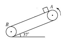 3、计算题 (8分)如图所示,传送带与地面夹角θ=37°,从A到B长度为16 m,传送带以v0="10" m/s的速率逆时针转动.在传送带上端A无初速地放一个质量为m="0.5" kg的物体,它与传送带间的动摩擦因数μ=0.5.求物体从A运动到B需要的时间.(sin37°="0.6," cos 37°=0.8,取g="10" m/s2)