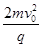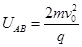 2、选择题 如图所示,质量为m,带电量为q的粒子,以初速度v0,从A点竖直向上射入真空中的沿水平方向的匀强电场中,粒子通过电场中B点时,速率vB=2v0,方向与电场的方向一致,则A、B两点的电势差为:( )