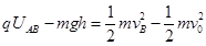 ,因为vB=2v0,粒子在竖直方向,只受到重力,所以机械能守恒,则有