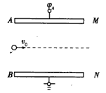 5、计算题 两平行金属板A、B水平放置,一个质量为m=5×10-6 kg的带电粒子,以v0=2 m/s的水平速度从两板正中位置射入电场,如图所示,A、B两板间距离为d=4 cm,板长L=10 cm。(g=10 m/s2)