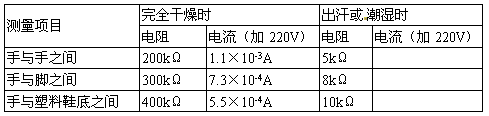 (2)在空格中填入,对人体加220伏电压后的电流值;