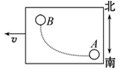 2、填空题 如图所示,以速度v匀速行驶的列车车厢内有一水平桌面,桌面上的A处有一小球.若车厢中的旅客突然发现小球沿图中虚线由A向B运动.由此可判断列车?(“减速”或“加速”)速行驶,向??(“南”或“北”)转弯。