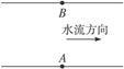 2、选择题 江中某轮渡站两岸的码头A和B正对,如图所示,水流速度恒定且小于船速.若要使渡船直线往返于两码头之间,则船在航行时应(?)