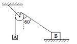 1、计算题 如图所示,拉B物的轻绳与竖直方向成60°角,为一定滑轮,物体A与B间用跨过定滑轮的细绳相连且均保持静止,已知B的重力为100N,水平地面对B的支持力为80N,绳和滑轮质量及摩擦均不计,试求: