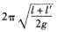 1、选择题 如图所示,一摆长为l的单摆,在悬点的正下方的P处有一钉子,P与悬点相距l-l",则这个摆做小幅度摆动时的周期为