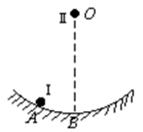 5、填空题 如图所示,半径是0.2m的圆弧状光滑轨道置于竖直面内并固定在地面上,轨道的最低点为B,在轨道的A点(弧AB所对圆心角小于5°)和弧形轨道的圆心O两处各有一个静止的小球Ⅰ和Ⅱ,若将它们同时无初速释放,先到达B点的是________球