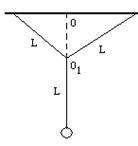 5、简答题 例如,在图中,三条长度均为L的绳子共同系住一个密度均匀的小球m,球直径为d。若摆球在纸面内做小角度的左右摆动,摆动圆弧的圆心在O1处,故等效摆长为