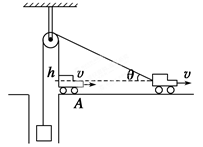 4、选择题 如图所示,汽车通过轻质光滑的定滑轮,将一个质量为m的物体从井中拉出,绳与汽车连接点距滑轮顶点高都为h,开始时物体静止于A,滑轮两侧的绳都竖直绷紧,汽车以v向右匀速运动,至汽车与连接的细绳水平方向的夹角为30°,则? (? )