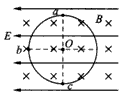 4、选择题 如图所示,空间存在水平向左的匀强电场和垂直于纸向向里的匀强磁场,电场和磁场相互垂直。在电磁场区域中,有一个竖直放置的光滑绝缘圆环,环上套有一个带正电的小球。O点为圆环的圆心,a、b、c为圆环上的三个点,a点为最高点,c点为晟低点,Ob沿水平方向。已知小球所受电场力与重力大小相等,现将小球从环的顶端a点由静止释放,下列判断正确的是
