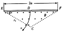 5、计算题 如图所示,在一底边长为2a,θ=300的等腰三角形区域内(D在底边中 点),有垂直纸面向外的匀强磁场,现有一质量为m,电量为q的带正电粒子从静止开始经过电势差为U的电场加速后,从D点垂直于EF进入磁场,不计重力与空气阻力的影响。