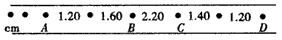 2、填空题 一打点计时器所用电源频率是50 Hz,如图所示,纸带上的A点先通过汁时器,A、B间历时_______s,位移为_______m,这段时间内纸带运动的平均速度是_______m/s,BC段平均速度是_______m/s,AD段平均速度是_______m/s。