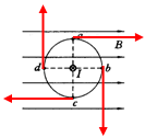 4、选择题  如图所示,有一根直导线上通以恒定电流I,方向垂直纸面向内,且和匀强磁场B垂直,则在图中圆周上,磁感应强度数值最大的点是