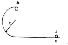 4、计算题 半径R = 40cm竖直放置的光滑圆轨道与水平直轨道相连接(如图所示)。质量m = 50g的小球A以一定的初速度由直轨道向左运动,并沿圆轨道的内壁冲上去。如果A经过N点时的速度v1= 6m/s,A经过轨道最高点M后作平抛运动,平抛的水平距离为1.6m。求: