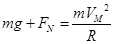 4、计算题 半径R = 40cm竖直放置的光滑圆轨道与水平直轨道相连接(如图所示)。质量m = 50g的小球A以一定的初速度由直轨道向左运动,并沿圆轨道的内壁冲上去。如果A经过N点时的速度v1= 6m/s,A经过轨道最高点M后作平抛运动,平抛的水平距离为1.6m。求: