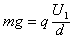 2、填空题  如右图所示,水平放置的两平行金属板间距为 d ,电压大小为U,上板中央有孔,在孔正下方的下板表面上有一个质量为 m、、电量为-q的小颗粒,将小颗粒由静止释放,它将从静止被加速,然后冲出小孔,则它能上升的最大高度 h = ______