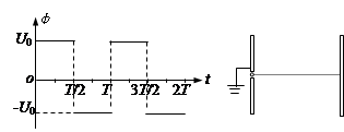 1、选择题 如图所示,两平行金属板竖直放置,左极板接地,中间有小孔.右极板电势随时间变化的规律如图所示.电子原来静止在左极板小孔处.(不计重力作用)下列说法中正确的是: