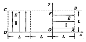 3、计算题 如图所示为研究电子枪中电子在电场中运动的简化模型示意图.在Oxy平面的ABCD区域内,存在两个场强大小均为E的匀强电场Ⅰ和Ⅱ,两电场的边界均是边长为L的正方形(不计电子所受重力).