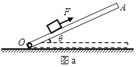 5、计算题 如图(a)所示,木板OA可绕轴O在竖直平面内转动,某研究小组利用此装置探索物块在方向始终平行于斜面、大小为F=8N的力作用下加速度与斜面倾角的关系。已知物块的质量m=1kg,通过DIS实验,得到如图(b)所示的加速度与斜面倾角的关系图线。若物块与木板间的动摩擦因数为0.2,假定物块与木板间的最大静摩擦力始终等于滑动摩擦力,g取10m/s2。试问: