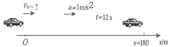 3、计算题 一辆汽车以1m/s2的加速度加速行驶了12s,驶过了180m,如图所示。汽车开始加速时的速度是多少?