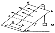 3、计算题 如图,光滑斜面的倾角α=30°,在斜面上放置一矩形线框abcd,ab边的边长l1=lm,bc边的边长l2=0.6m,线框的质量m=1kg,电阻R=0.1Ω,线框通过细线与重物相连,重物质量M=2kg,斜面上ef线(ef∥gh)的上方有垂直斜面向上的匀强磁场,磁感应强度B=0.5 T,如果线框从静止开始运动,进入磁场最初一段时间是匀速的,ef线和gh的距离s=11.4m,(取g=10m/s2),求: