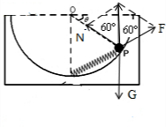 本题解析:对小球受力分析:重力G、弹簧的弹力F和容器的支持力N,如图所示