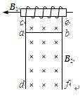4、计算题 如图,线框用裸导线组成,cd、ef两边竖直放置且相互平行,裸导体ab水平放置并可沿cd、ef无摩擦滑动,而导体棒ab所在处为匀强磁场B2=2T,已知ab长L=0.1m,整个电路总电阻R=5