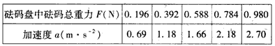 (2)平衡摩擦力后,将5个相同的砝码都放在小车上挂上砝码盘,然后每次从小车上取一个砝码添加到砝码盘中,测量小车的加速度小车的加速度a与砝码盘中砝码总重力F的实验数据如下表: