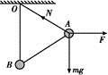 以B为研究对象,B受重力和OB绳的拉力,AB绳的拉力为零;再以A为研究对象,进行受力分析,如图所示.根据力的矢量运算法则,可得F=mg,选A.