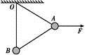 5、选择题 两个可视为质点的小球A和B,质量均为m,用长度相同的两根细线分别悬挂在天花板上的同一点O.现用相同长度的另一根细线连接A,B两个小球,然后用一水平方向的力F作用在小球A上,此时三根细线均处于伸直状态,且OB细线恰好处于竖直方向,如图所示.如果两小球均处于静止状态,则力F的大小为