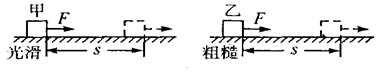 1、选择题 甲、乙两个质量相同的物体,用大小相等的力F分别拉它们在水平面上从静止开始运动相同的距离s。如图所示,甲在光滑面上,乙在粗糙面上,则下列关于力F对甲、乙做的功和甲、乙两物体获得的动能的说法正确的是( )
